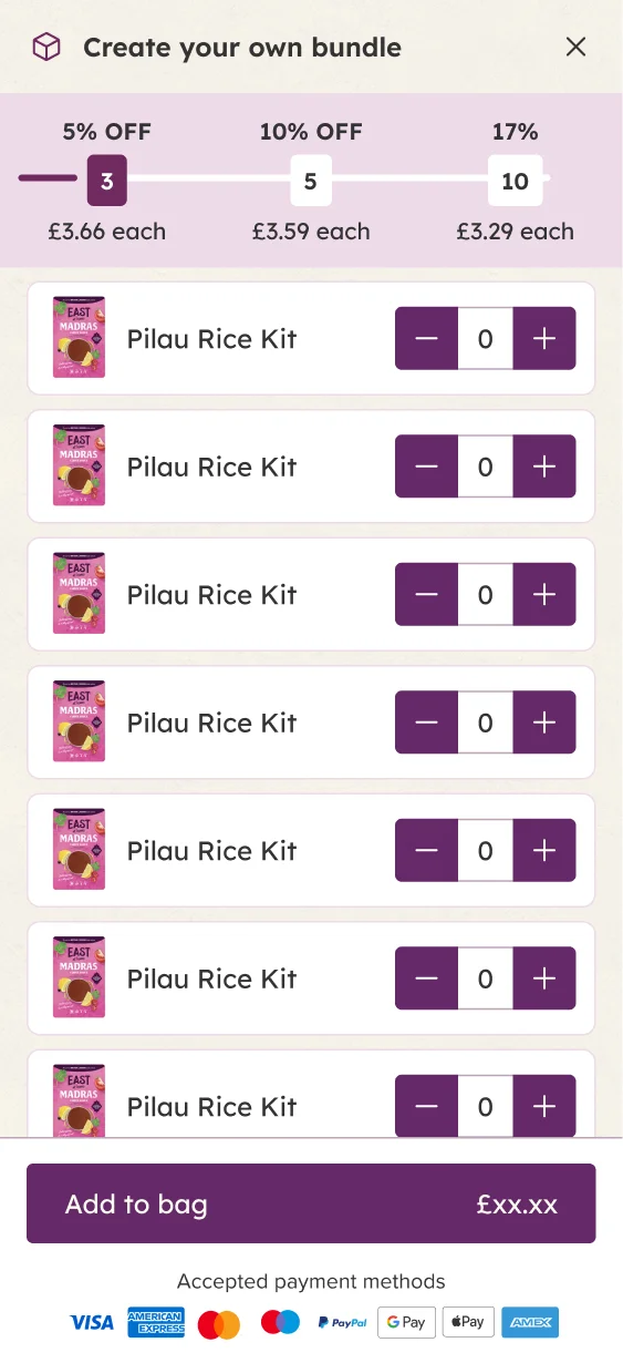 Using the design system as a foundation, I created a simple, intuitive bundle builder that worked flawlessly on mobile. Customers could mix and match their favourite sauces and kits, with clear visual feedback at every step.