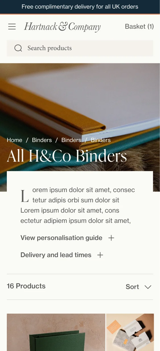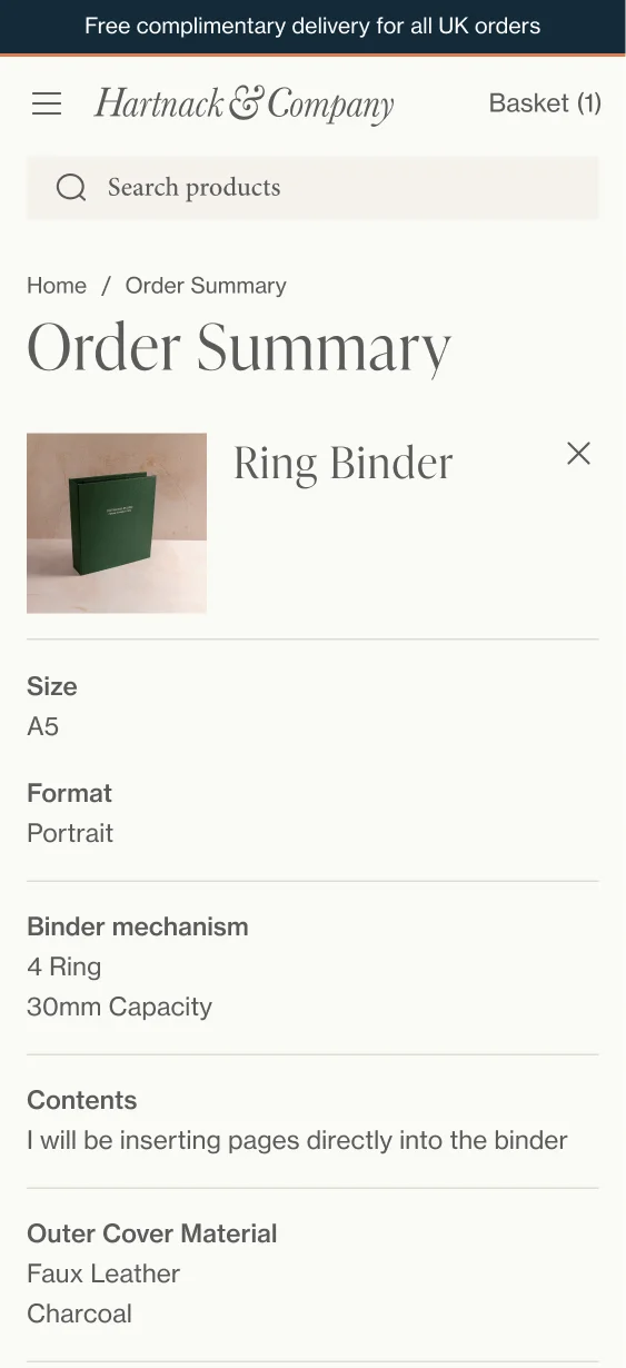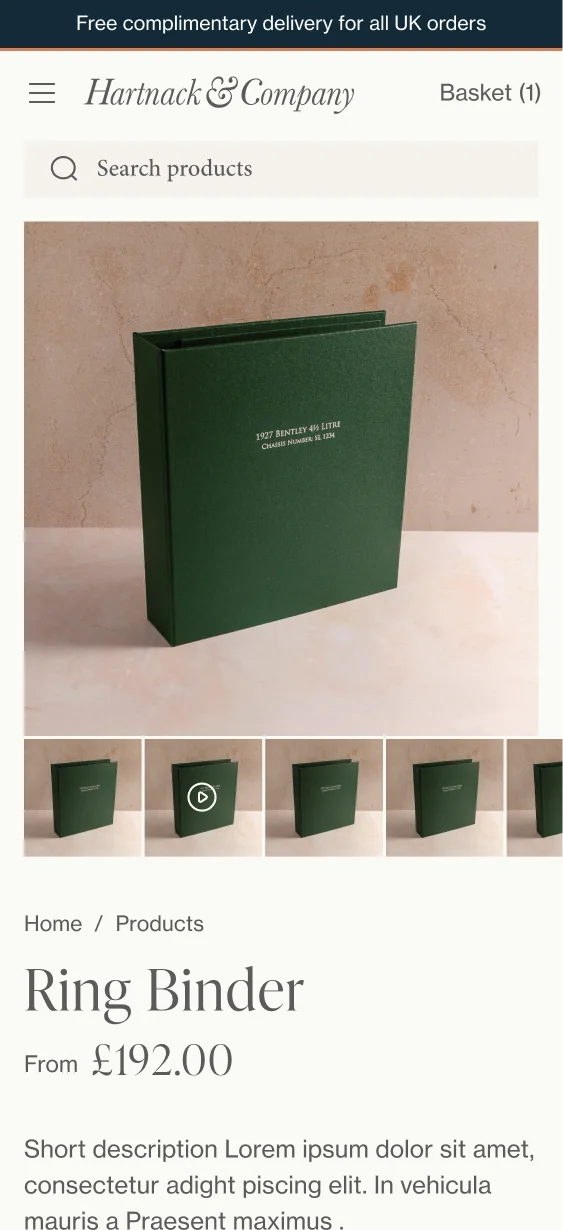 Hartnack & Co handcrafts premium binders, books, and portfolios, with every product made to order. Their existing website was dated, with a stressful and cluttered purchase journey that didn’t reflect the care and craftsmanship behind their products. I was brought in to elevate the brand experience, refine the design system, and create a bespoke Shopify product page that made customisation simple, calm, and elegant. All while positioning Hartnack & Co as the premium choice in their market.