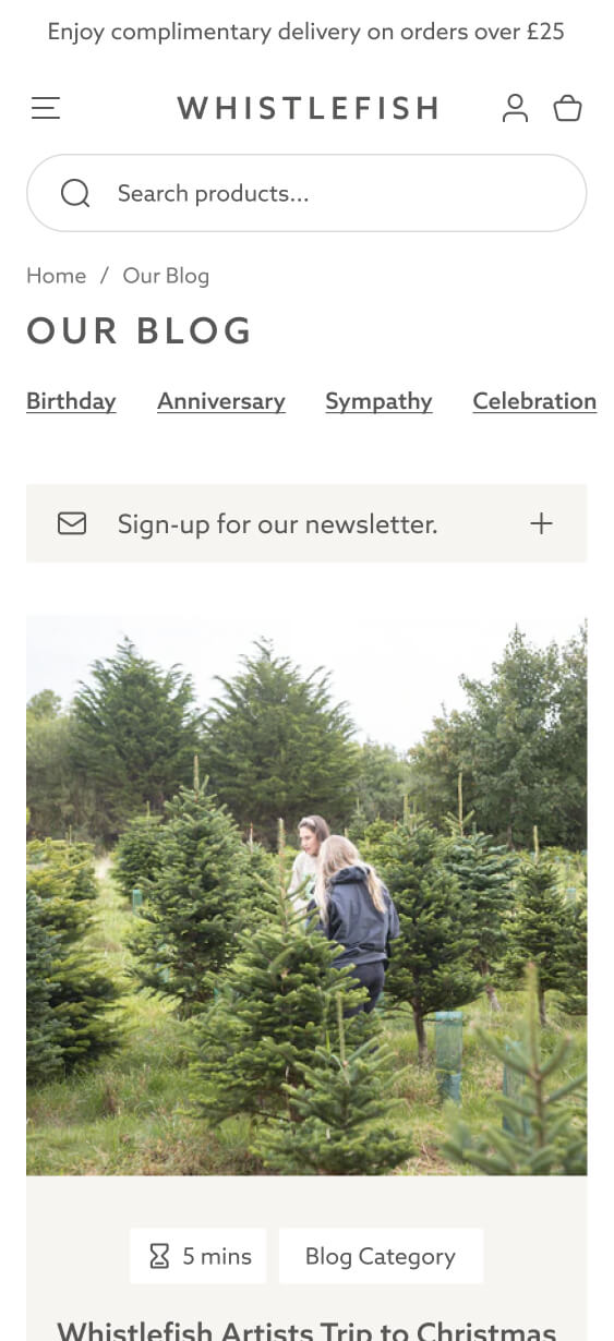 Whistlefish, a returning client, approached me to refresh their website design as part of their move to Shopify 2.0. The goal was to create a flexible, scalable design system that gave their team the power to build out landing pages for seasonal gifting campaigns, while also setting the foundations for future CRO (conversion rate optimisation) and AOV (average order value) improvements.