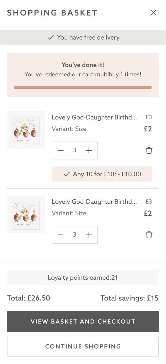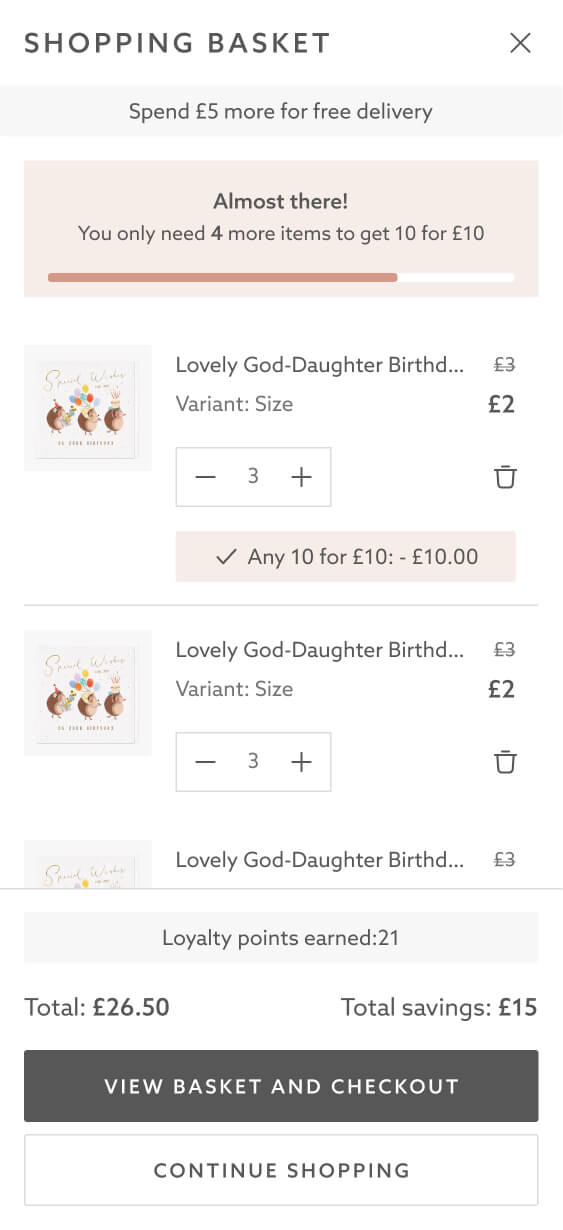 • Clear product messaging showing how many more items were needed to unlock an offer